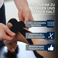 Das Kinesiotape kann universell am Bewegungsapparat eingesetzt werden und passt sich durch die Dehnbarkeit ideal an.