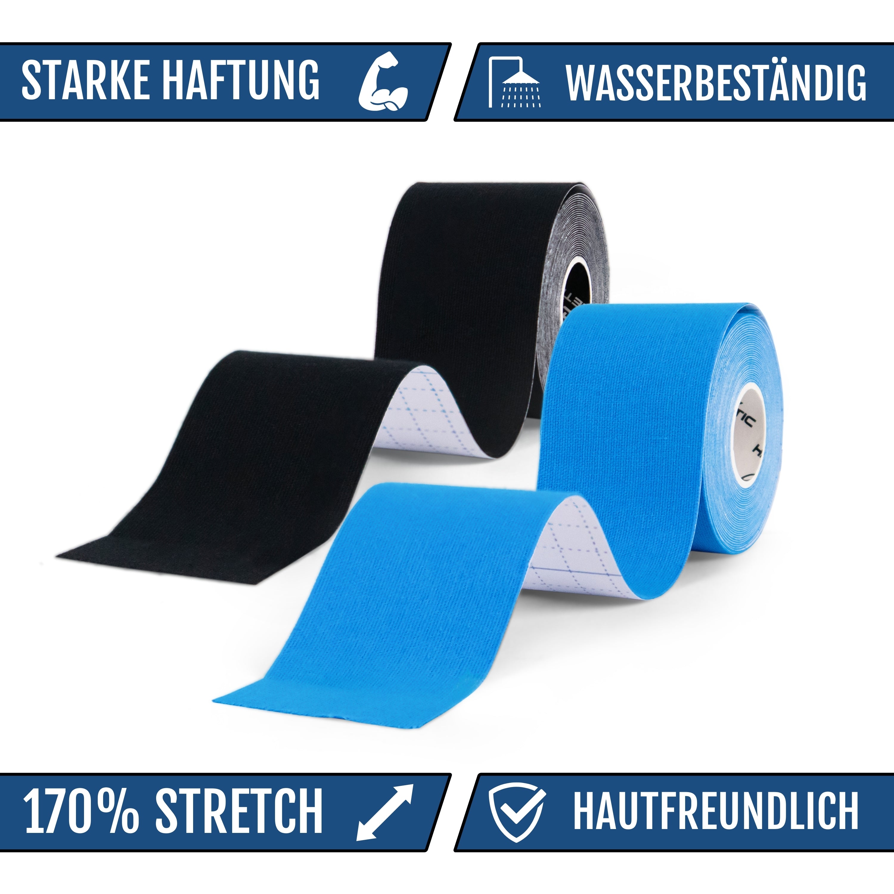 Kinesiotape ist ein elastisches Baumwolltape mit 3% Elastan. Es passt sich durch die Dehnbarkeit ideal an den menschlichen Bewegungsapparat an. Es kann den Körper bei verschiedenen Prozessen und Beschwerden unterstützen ohne die Beweglichkeit einzuschränken.
